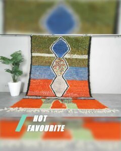 The natural fibers and dyes used in its creation are eco-friendly, highlighting the rug’s commitment to sustainability and the design it is a captivating blend of geometric patterns and vibrant colors that reflect the rich cultural heritage of moroccan artistry.
