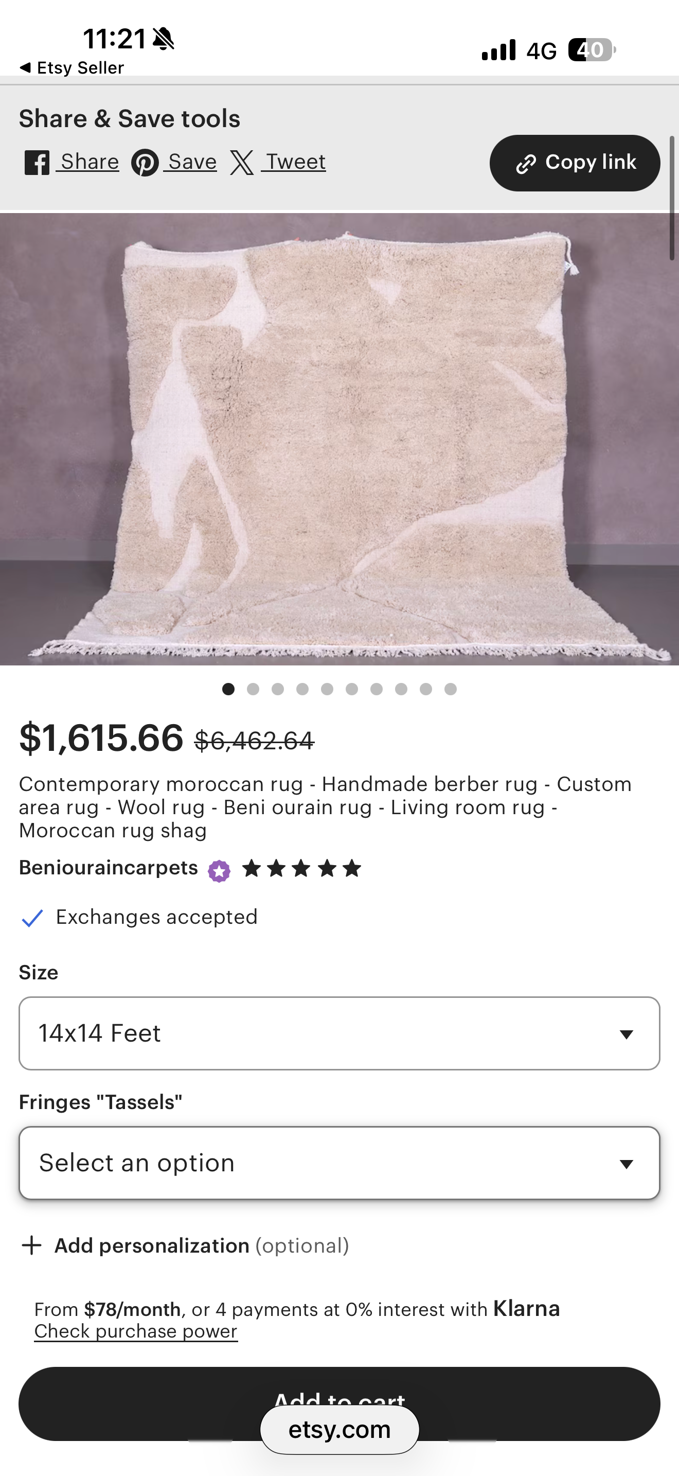 Custom rug 14×14