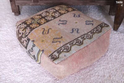 Elevate your space with the exceptional craftsmanship of this moroccan pouf, created from vintage moroccan kilim for an authentic touch of morocco.